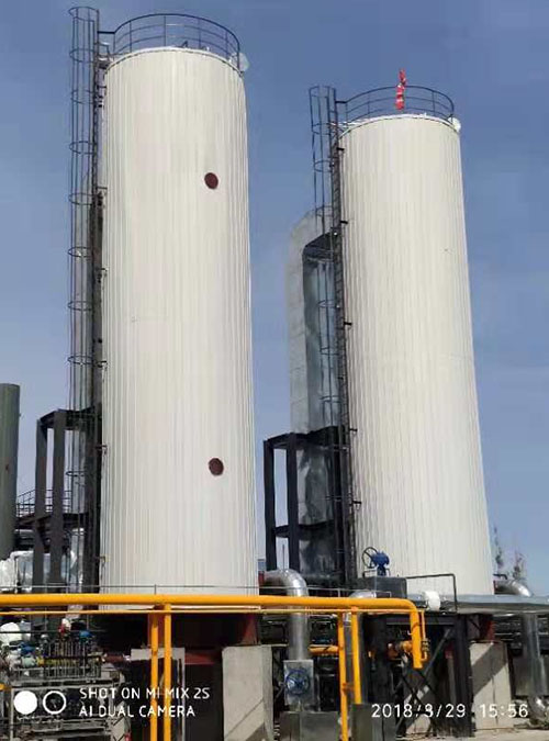 該導熱油爐使用的燃料比較復雜,它是以天然氣為主燃料,在天然氣燃燒的過程中,需要把生產過程中產生的四氫呋喃的廢液(含量達到50%左右)以及在生產中產生酯化水和汽提尾氣一起處理掉,單臺導熱油爐每小時處理的廢液和廢氣量為1噸多和2噸多。